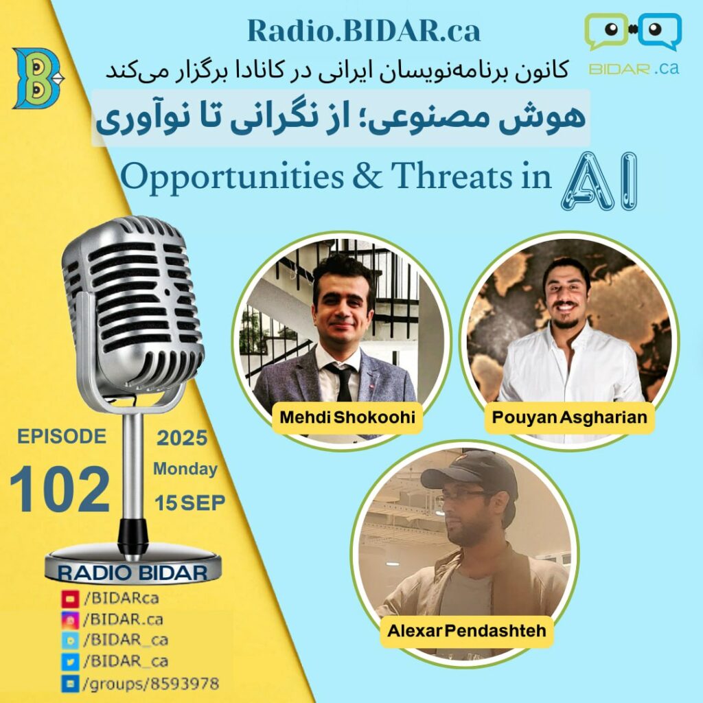 پادکست شماره ۱۰۲ رادیو بیدار مناظرهای با موضوع هوشمصنوعی از نگرانی تا نوآوری Opportunities & Threats in AI توسط: مهدی شکوهی (https://www.linkedin.com/in/mehdi-shokoohi/)، پویان اصغریان...